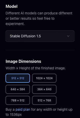 Выбирайте максимальное разрешение, которое будет доступно. Например, я чаще всего использовал 768х512 и 1024х1024, в зависимости от того, какое соотношение сторон хочу получить.