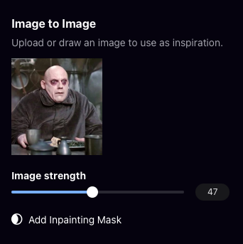 Image strength — то, насколько точно должна быть похожа генерация картинки. При 47 получился вот такой результат.