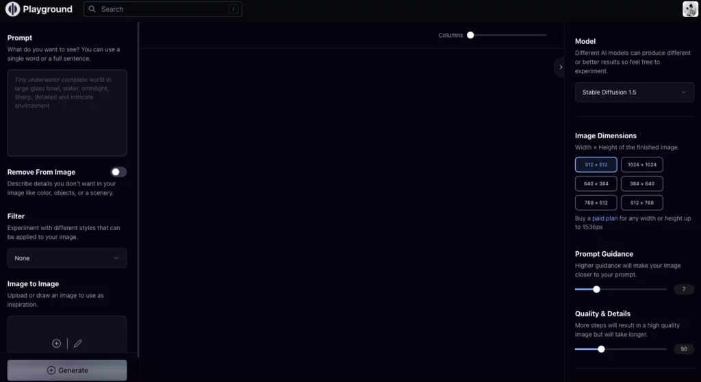 Слева в колонке prompt пишем, что хотим увидеть в итоге. Remove From Image — туда пишем, что хотим удалить из сгенерированной картинки. Filter — тут мы выбираем в каком стиле хотим видеть работу. Image to Image — здесь можно загрузить свою картинку, и на ее основе сгенерировать новую. Ну и сама кнопка Generate, чтобы сделать картинку. Справа выбираем какое разрешение картинки нам нужно сгенерировать. Этих знаний вам хватит, чтобы сделать свою первую обложку.