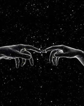 В вибрации столкновения атомов слышно блаженство,Всевидящая материя складывает концепции,Где случайность танцует хаотичные комбинации, Породив волшебство. Частицы прыгают в бесконечном вальсе, Чёрное пространство играет в ...