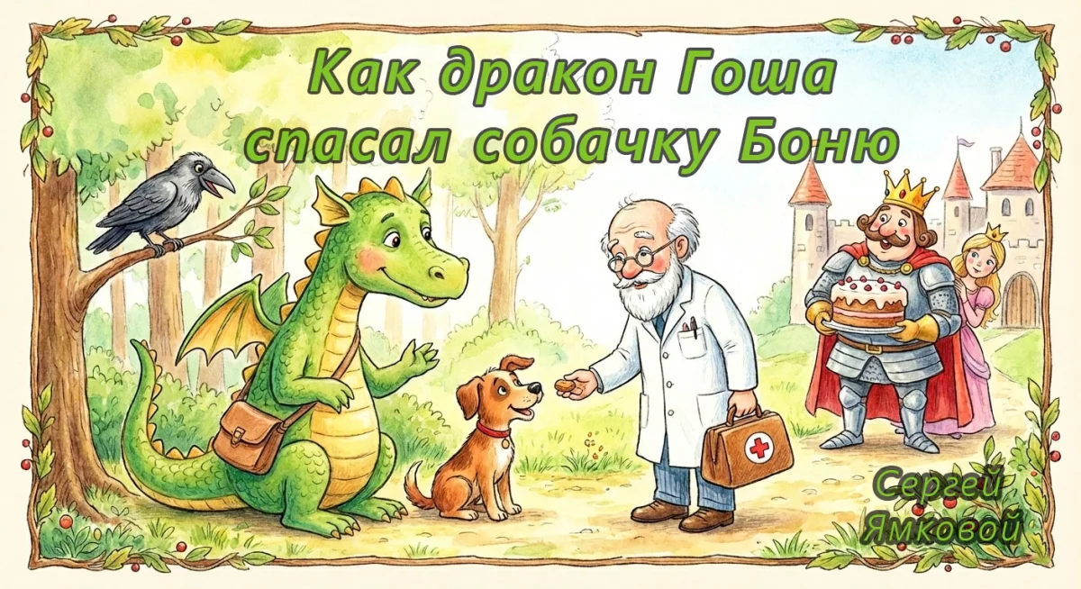 История началась на лесной поляне. Дракон Гоша сидел под раскидистым дубом, а его любимая собачка Боня звонко тяфкая, бегала за пестрыми бабочками, гоняя их с одного цветка на другой. И… дотявкалась. Осипла, так что ни «тяф», ни «гав» сказать не ...