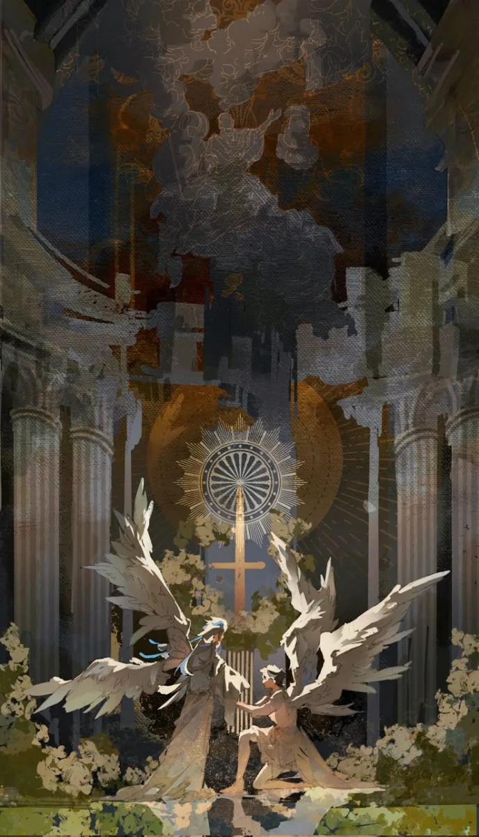 За холмы, покрытые чёрным лесом, медленно опускалось солнце. Его косые, угасающие лучи скользили по некогда колосистому полю, теперь истоптанному и изрытому сапогами и копытами. По всей площади, среди обломков мечей и щитов, беспорядочно лежали кучи ...