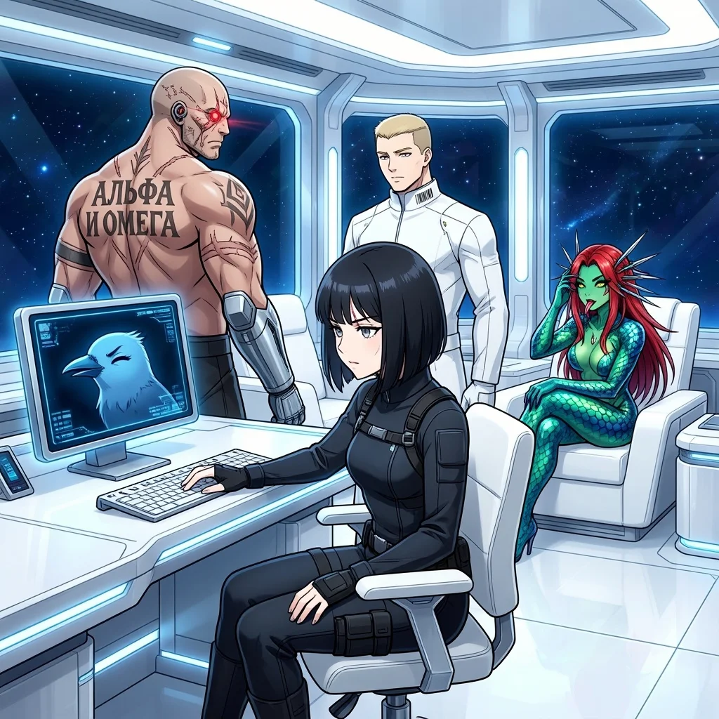 Исходникдевушке шифровальщице Гретель с кошкой Хитоми — *красивые глаза*. повезло с командиром истребителя Георгом в космо капсулеспаслись и дрейфуютна самом деле бортовой ии поддеживает ей иллюзии пока она летит на боевое заданиеКосмический бред с ...