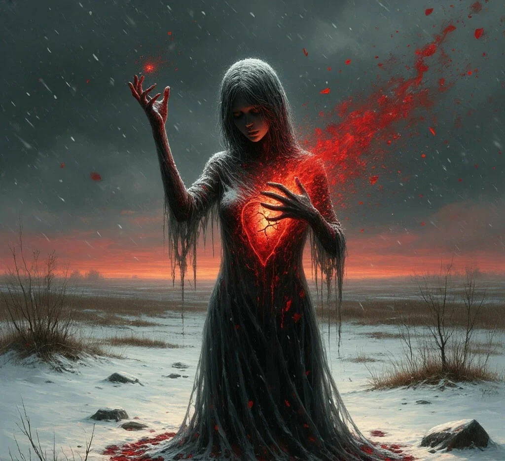 Чувства, покрытые скорбьюуйдут, оставив лишь след.И мы, с открытой ладоньюбудем ждать алый снег.Эмоции счастья утонут во тьмеРазрушение духа станет как норма,остатки души сгорают в огне,тело оставив лишь пустой формой.Снег, пропитанный ...